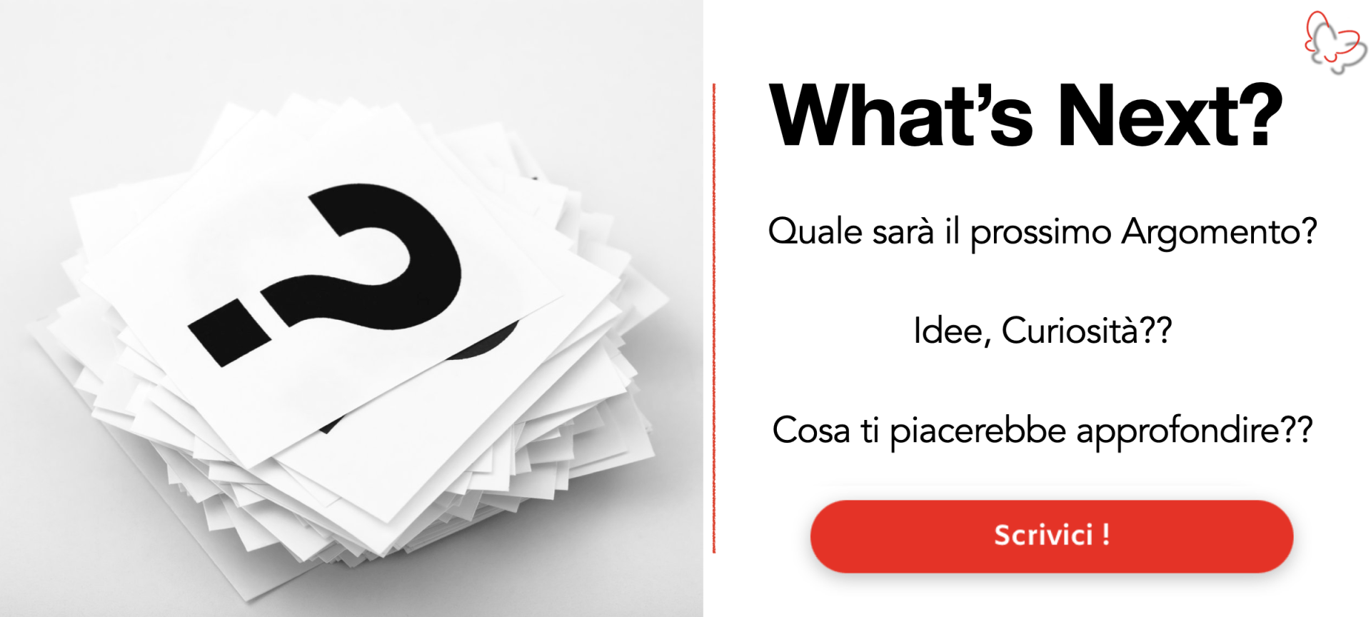 Hai una domanda o vorresti fissare un colloquio gratuito per capire se posso esserti d'aiuto? Vai alla sezione contatti e compila il Form oppure clikka sui pulsanti social qui accanto!!